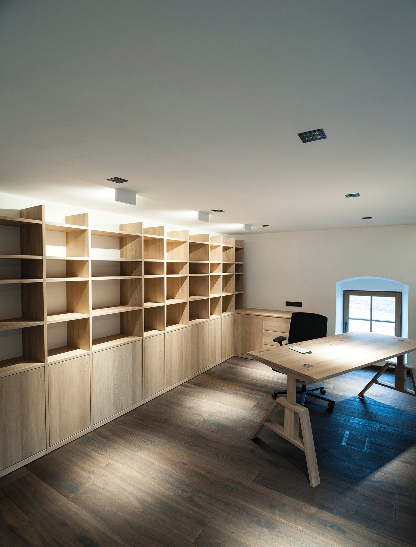 Recessed LED spotlight in aluminium. White or black powder coated. Recessed lenses with different beam-angles. Perfect anti-glare due to high-gloss grid. Height-adjustable insert with adjusting screw.