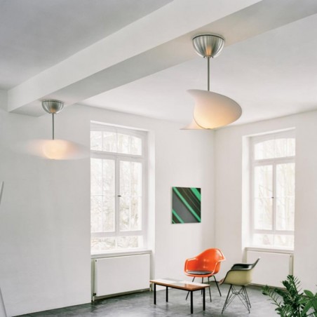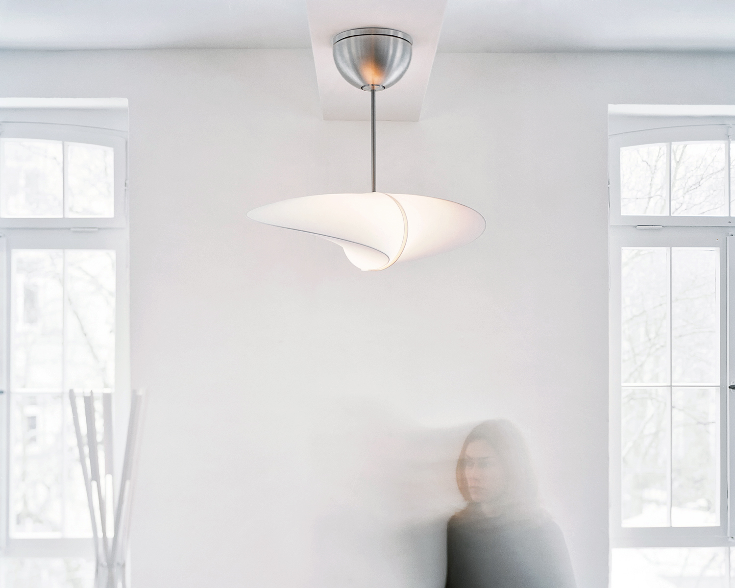 The Propeller Suspension is a wonderfully delicate design as well as a silent fan/main ceiling light at the same time. The Propeller Suspension has washable, elastic fabric pulled over its filigree spring wireframe. It is Illuminated from the inside, and with remote control, you can easily regulate the number of revolutions, the brightness and even the direction of rotation from your favourite spot.