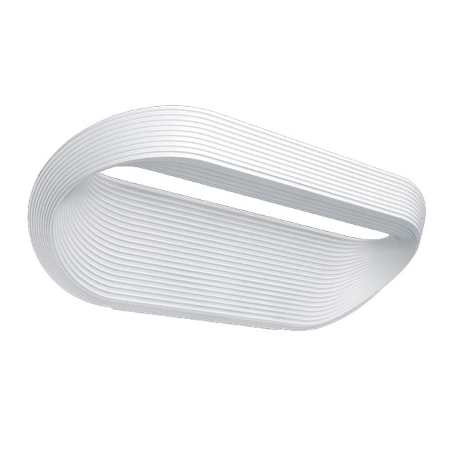 LED wall lamp with dimmer for interiors, providing indirect light. A shiny sequence of ripples, each one breaking on the next, enclosed in a white ring. Bright rays of light and a line of shadow are projected onto the wall and ceiling, reiterating the lamp’s design in the room.